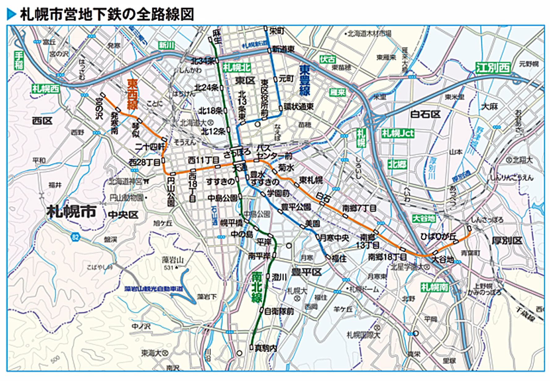 1972年 地下鉄南北線開通に伴い地下鉄平行部分の本路線の市電廃止。