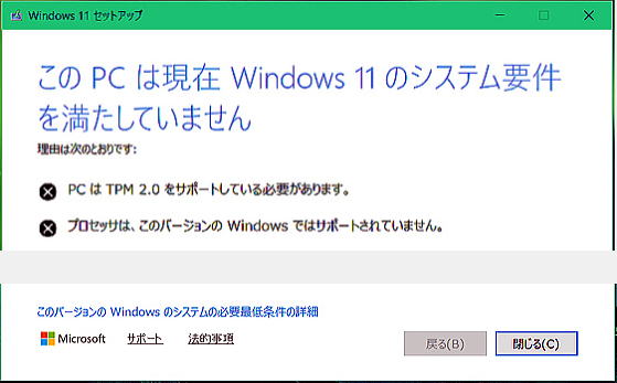 に購入したパソコンは、無情にもWindows 11にアップグレードできない可能性が高くなっています。