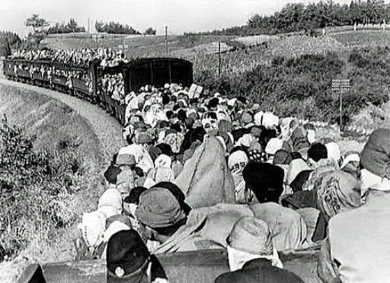 「買い出し列車」昭和20年11月、満員の人を乗せて東京に向かう列車。イモなどの食糧の買い出しをすませて帰る途中に千葉県内で撮影された。